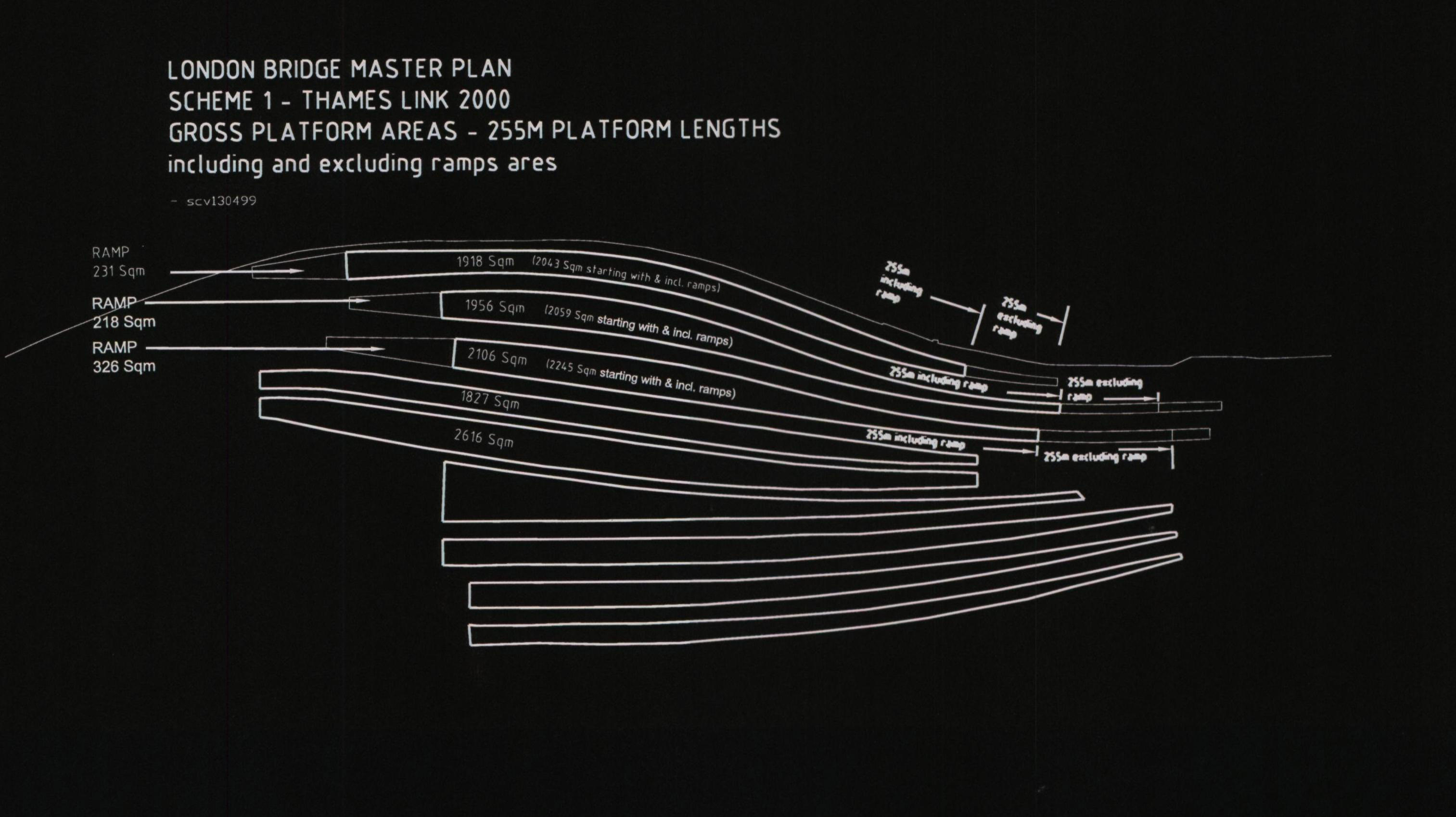Consultations for tracks and platform layout optimisation. Presentations to Railtrack Plc., Southwark Council, Highways Authority, London Transport Plc., CABE, and English Heritage. Planning application submitted - June 1999. Transport and traffic strategy; Concourse design; vertical circulation design; Air-rights building; Bus station and taxi rank design; 3D modeling of concourse proposals; and design of platform canopies.